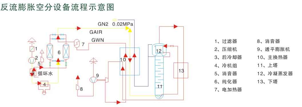 高純氮空分設備采用分子篩吸附、氣體膨脹機膨脹制冷、單塔精餾原理??筛鶕脩粜枰煌螒B(氣態。液態)氮氣的使用,可根據用戶需要不同壓力等級氮氣定制,做到能耗最低,該振生產規模從10Nm3/h到10000Nm3/h(氮氣產量)均可按照用戶需求特殊定制。